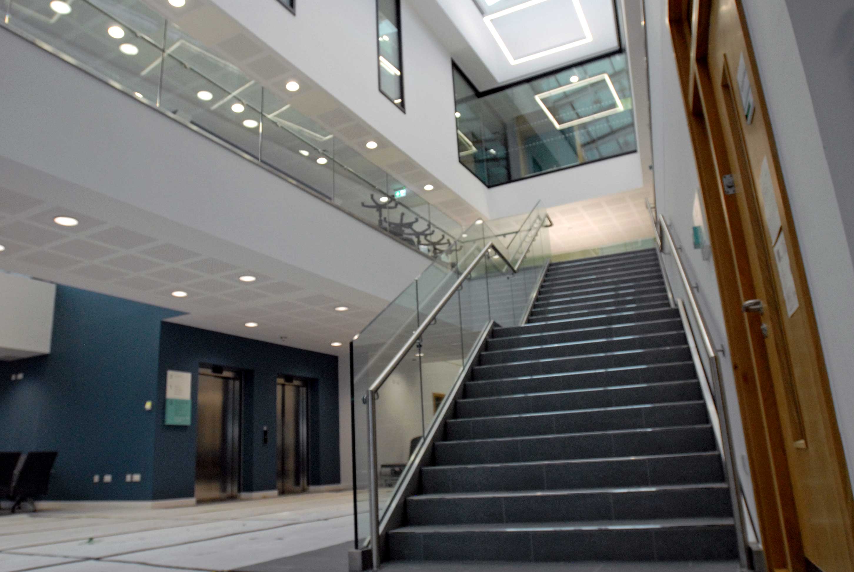 Once on the first floor - turn left up the stairs or right out the lift and you will see the Green Practice Reception area.